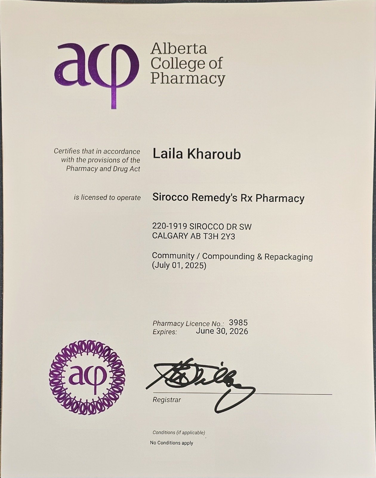 Pharmacy’s License: 3985